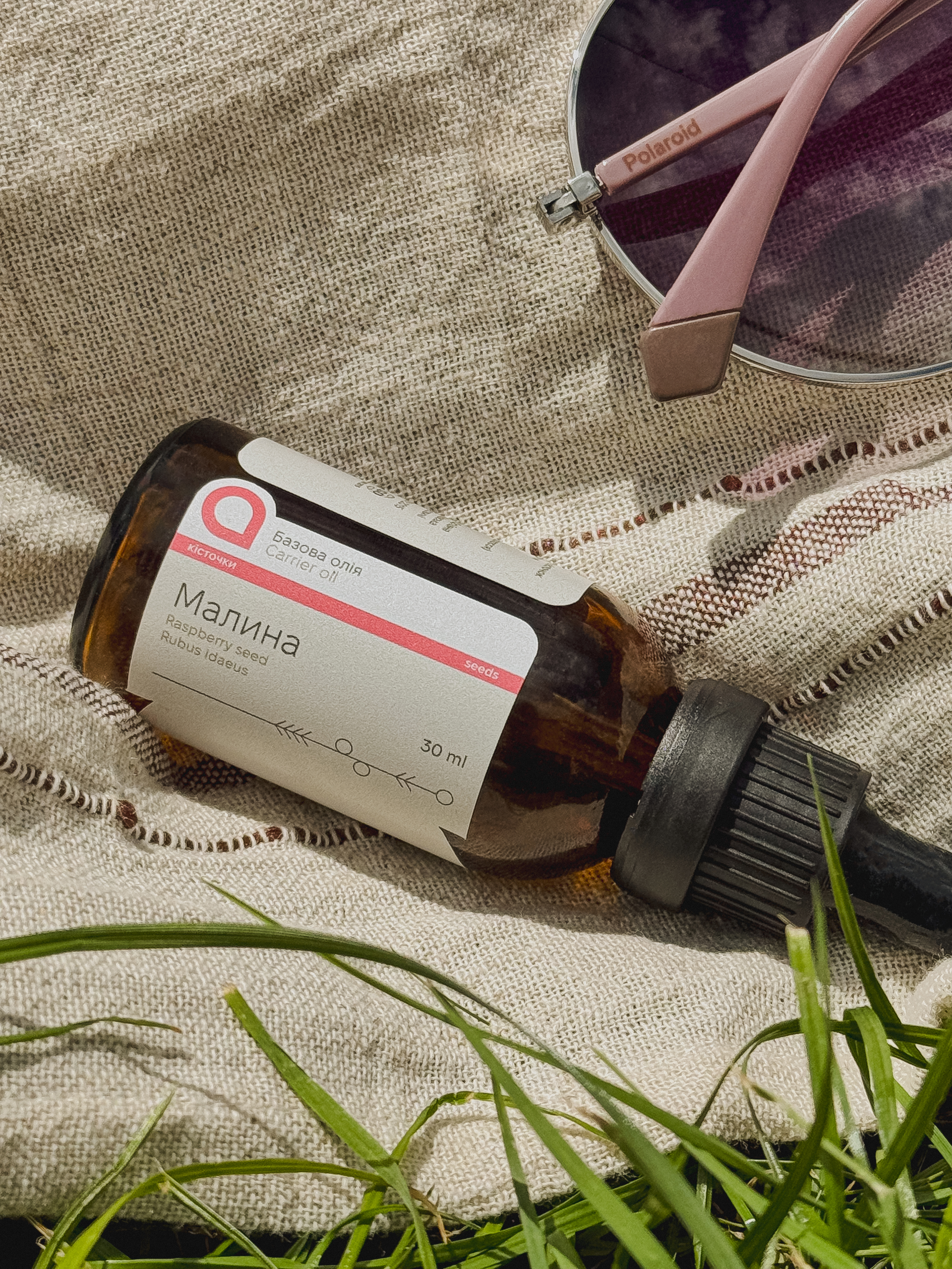 як захист шкіри від сонця - олія малинових кісточок + ефірна олія сандала після гідролату календули